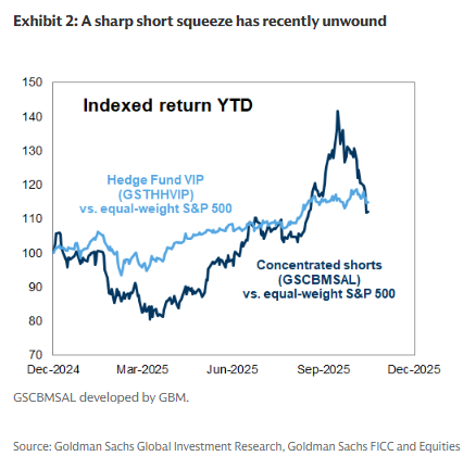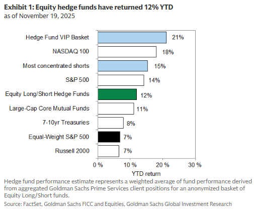 全球对冲基金持仓结构:多头主导收益,空头波动加剧行业分化高盛 (B. Snider, 251120)